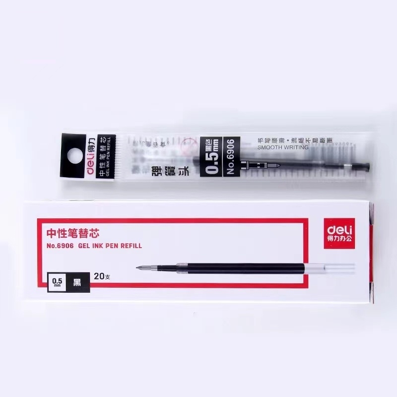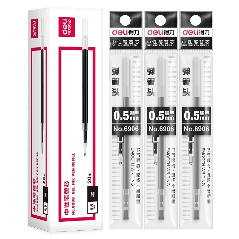 得力 deli 按动中性笔芯 6906 0.5mm (适用于S01) 20支/盒(黑色、红色、蓝色)