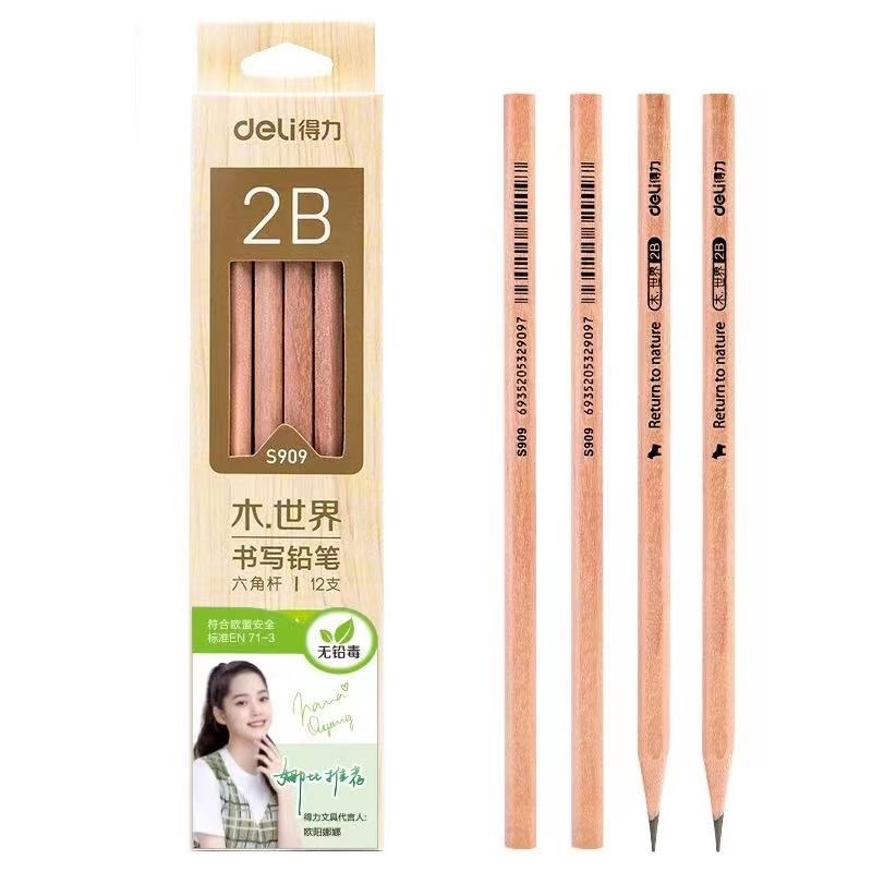得力 deli 2B铅笔 原木铅笔 12支/盒 S909