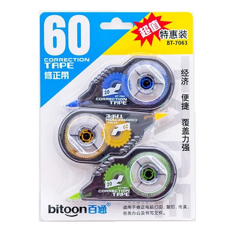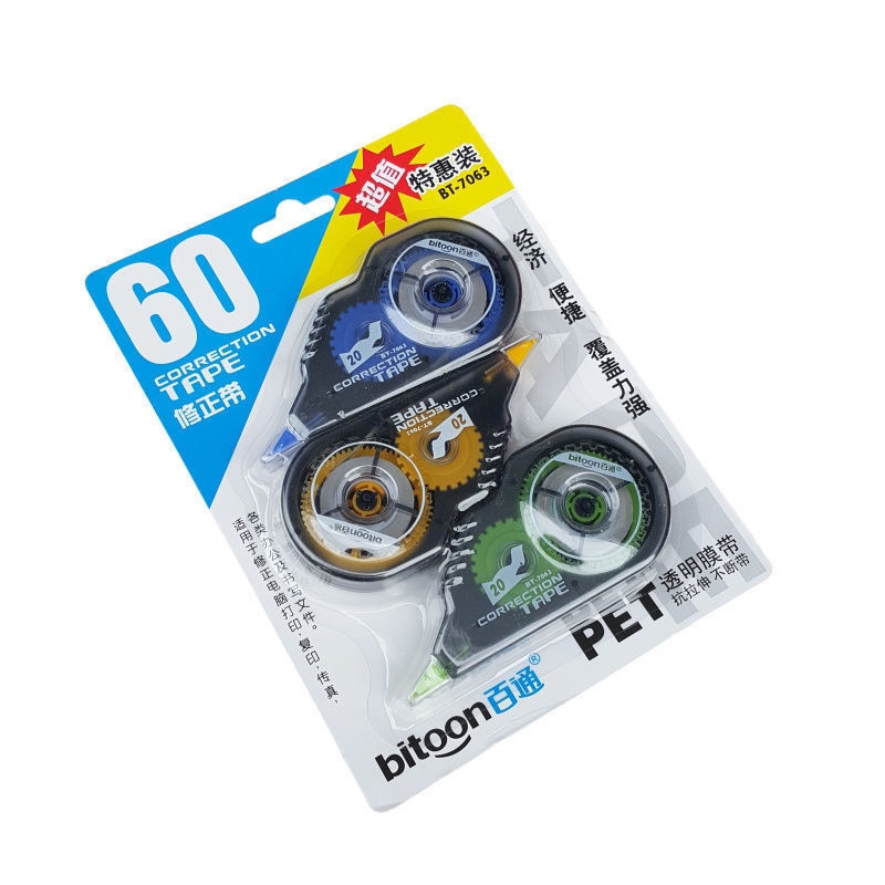 百通 涂改带大容量修正带 7063 3支装