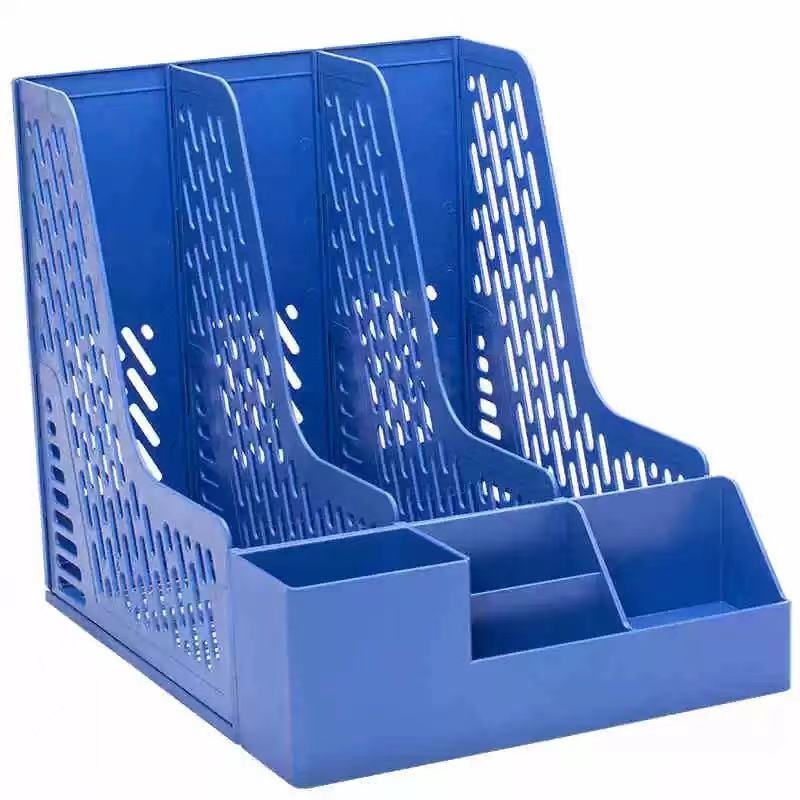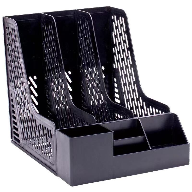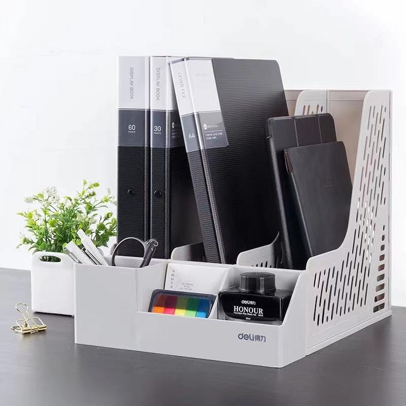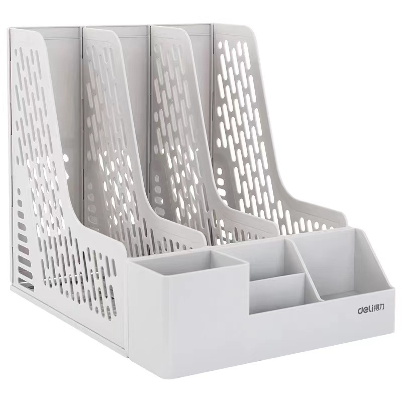 得力 deli 带笔筒多功能三联文件框/文件筐/文件架 78980 (蓝色、黑色、灰色)