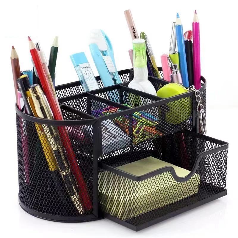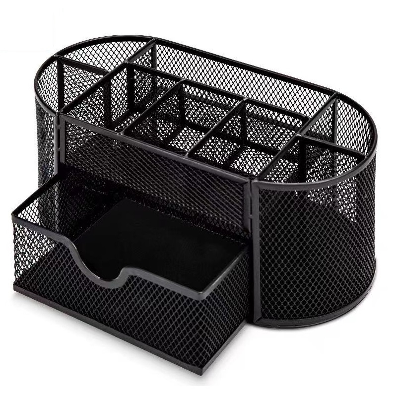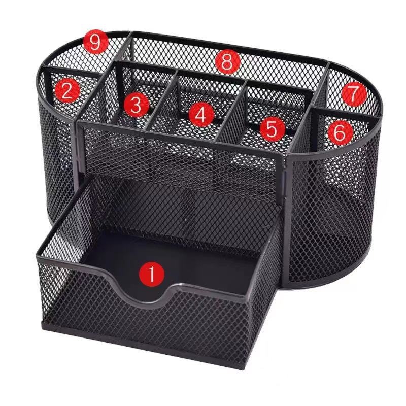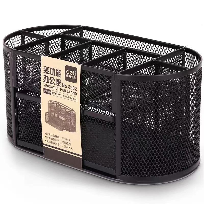 得力 deli 金属网办公桌面收纳盒 多功能九格组合笔筒 8902