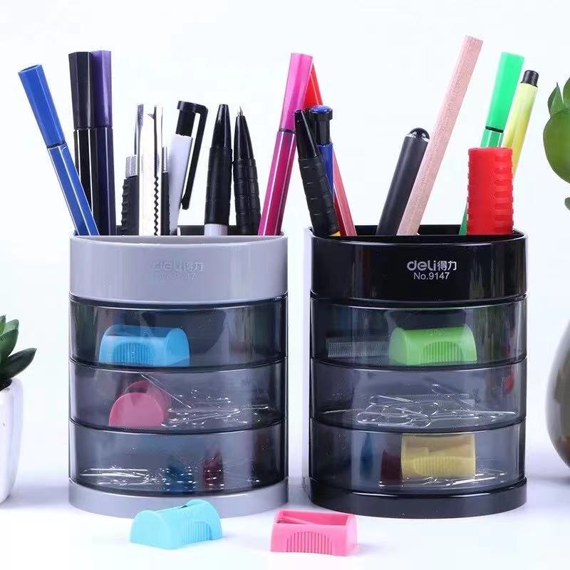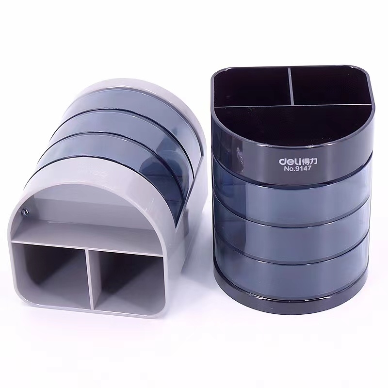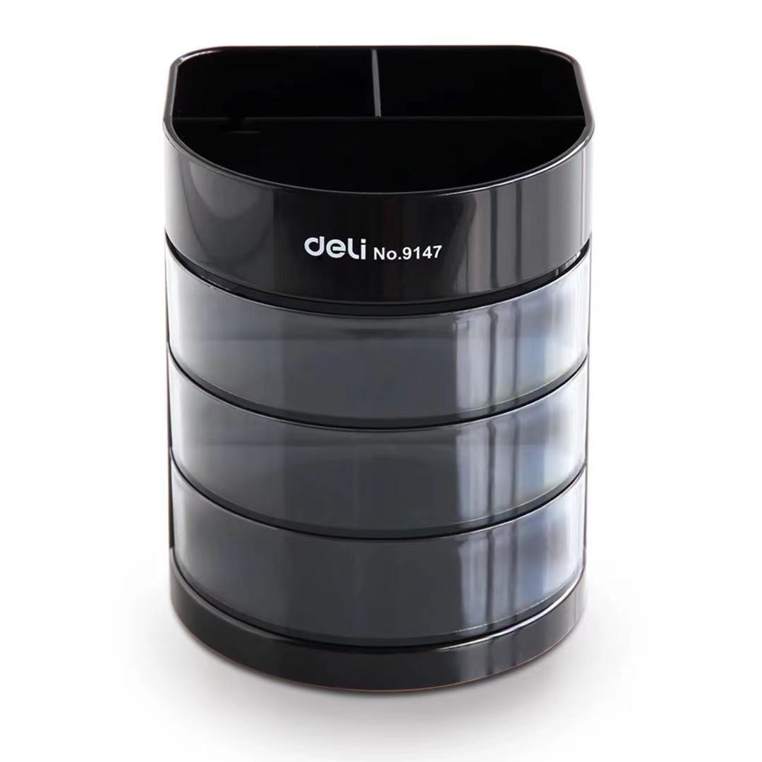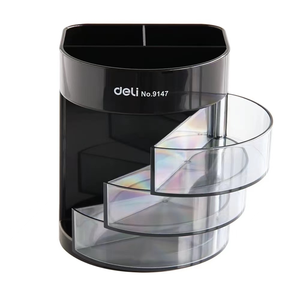 得力 deli 三层多功能笔筒/桌面收纳盒 9147(黑色/灰色)