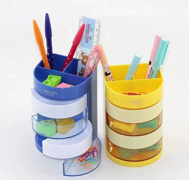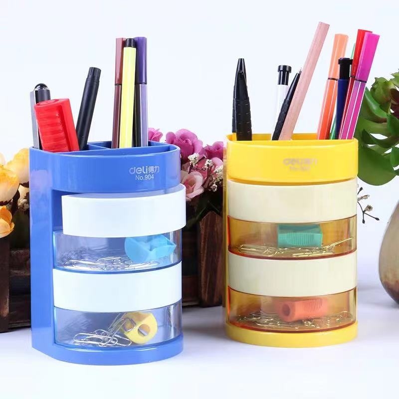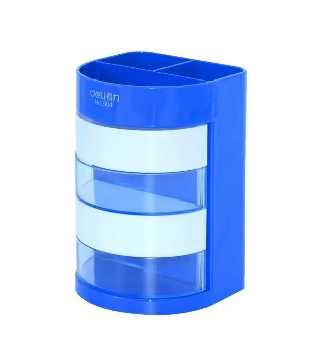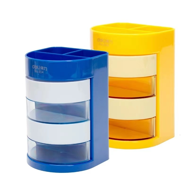 得力 deli 四层彩色办公笔筒 桌面收纳盒 (蓝色/黄色) 904