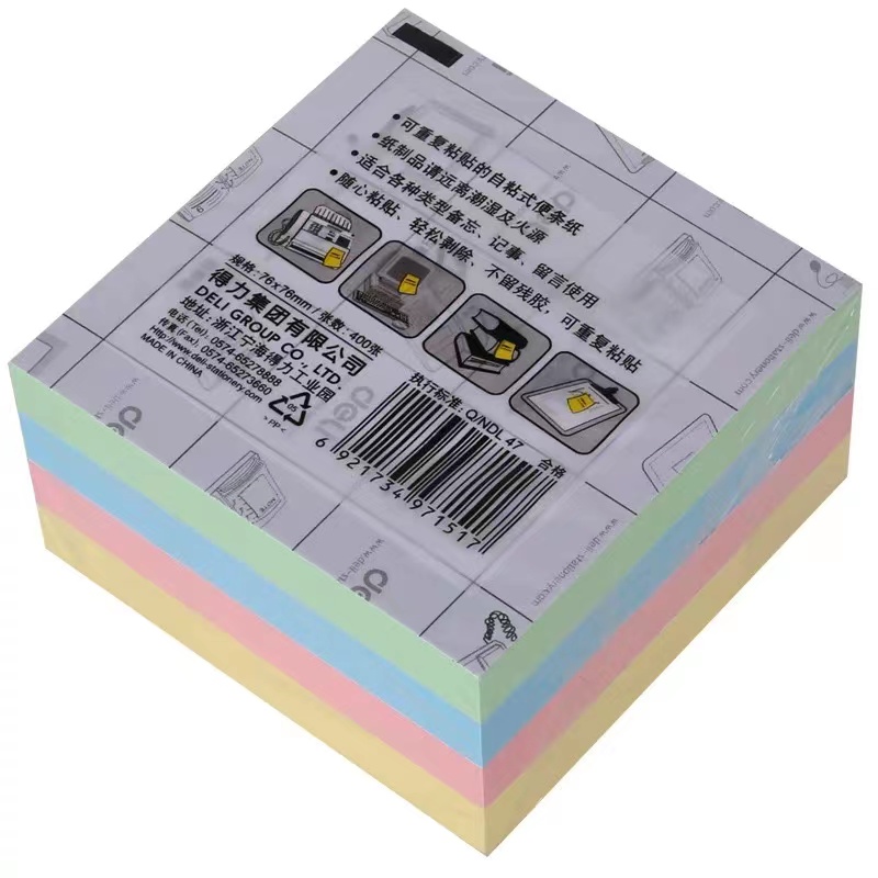得力 deli 7151 四色装便利贴/便签纸/便签本/百事贴 76x76mm 400张