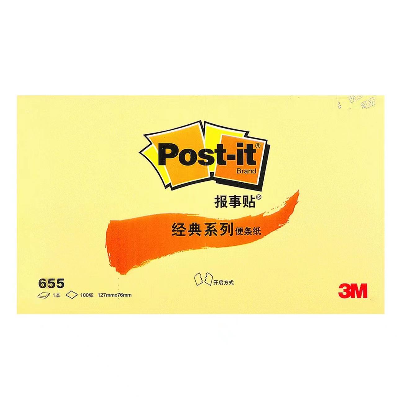 3M 655 便利贴/便签纸/报事贴/易事贴/百事贴 颜色随机 12本/包 76x127mm