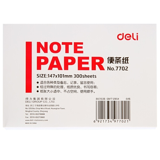 得力 deli 便签纸 7702 147*101mm (白色)
