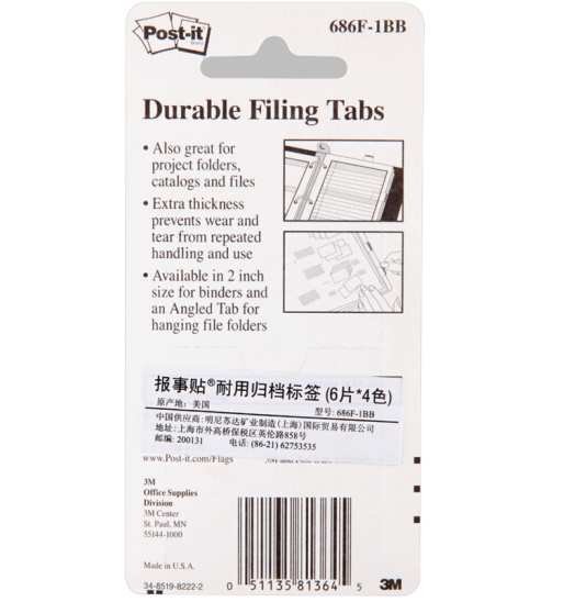 3M 归档 指示标签 686F-1BB 50.8*38.1mm*4 (混色) 6片/条 4条/包