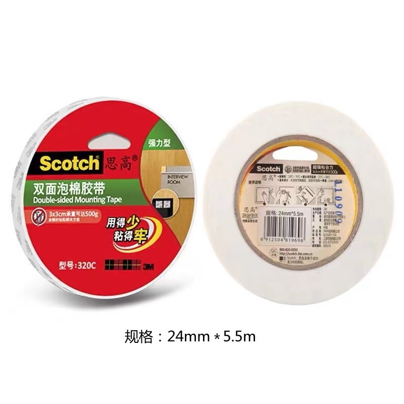 3M 思高 双面泡棉胶带 海绵胶 320c 24mm*5.5m