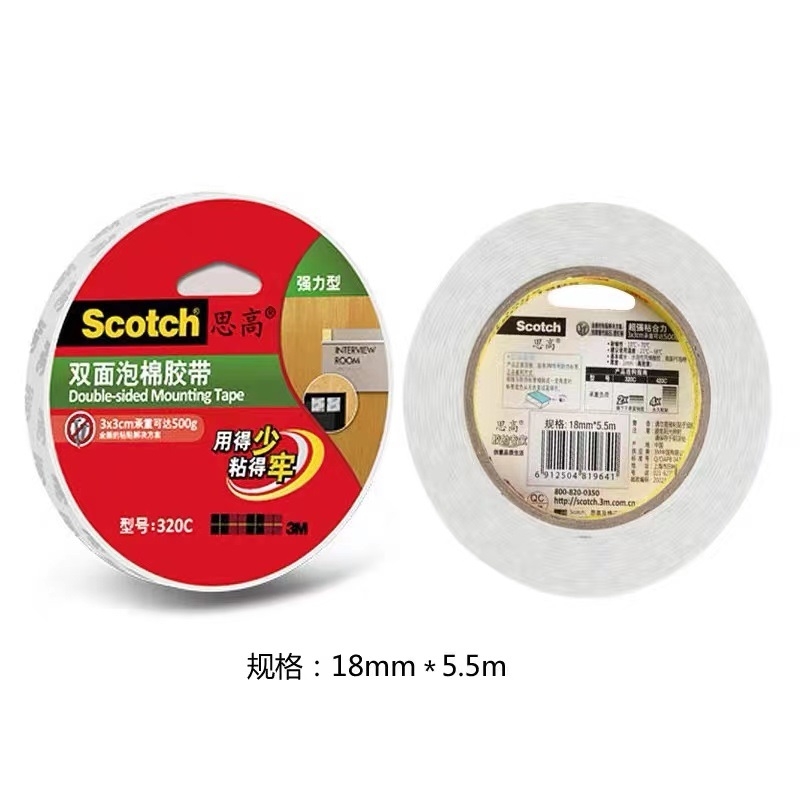 3M 思高 双面泡棉胶带 海绵胶 320c 18mm*5.5m