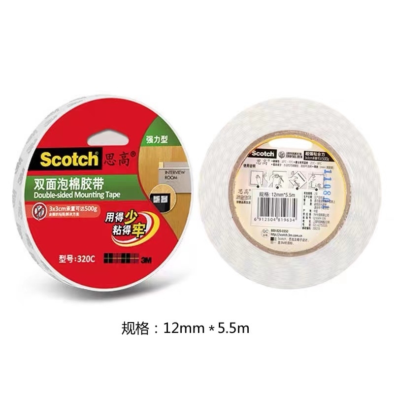 3M 思高 双面泡棉胶带 海绵胶 320c 12mm*5.5m