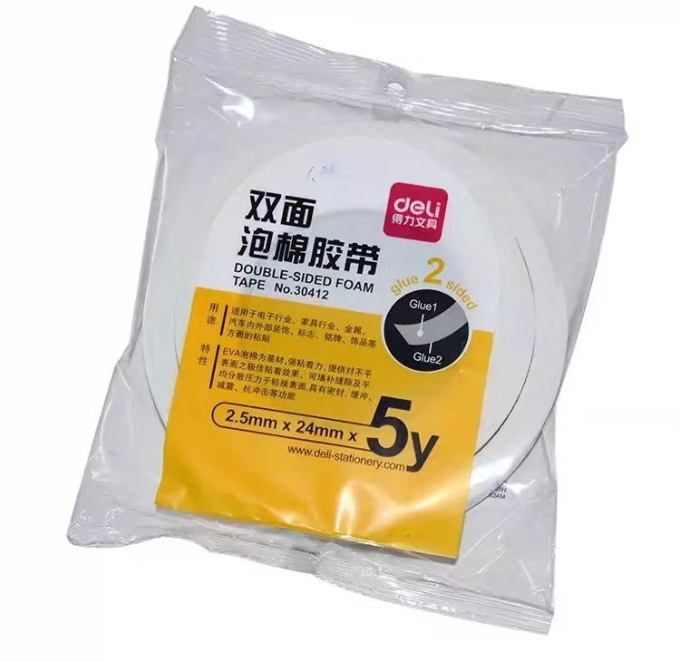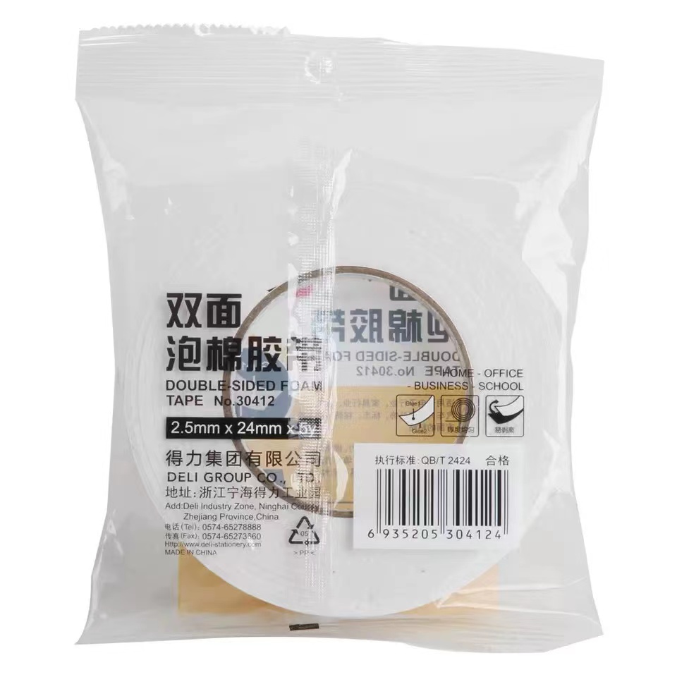 得力 deli 泡棉双面胶带 海绵胶 30412 24mm*5y 1卷/袋