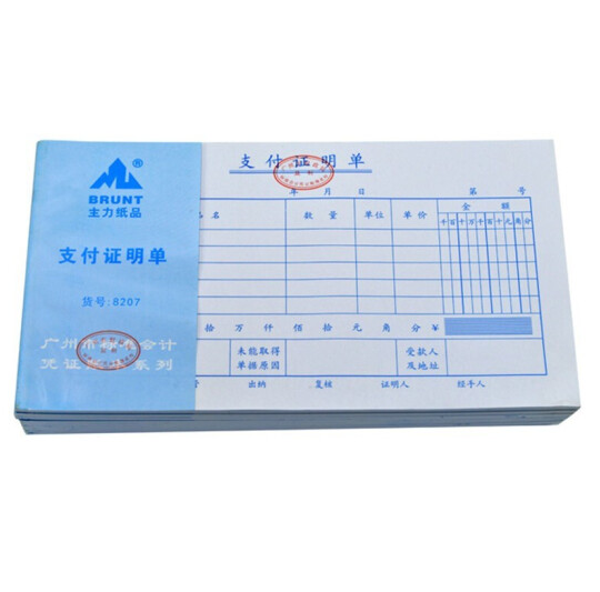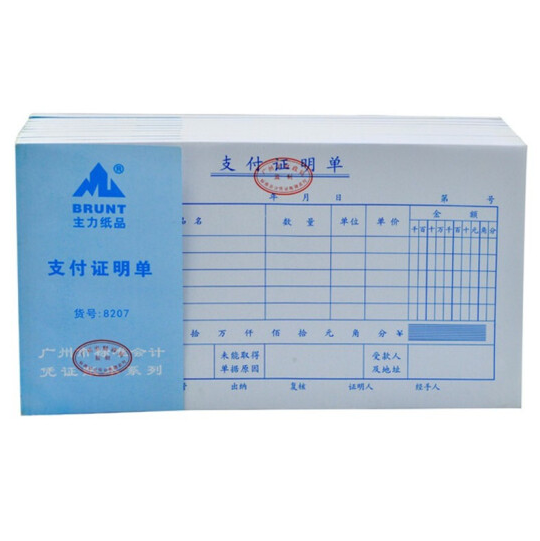 主力 支付证明单 24K 230*130mm 50页/本 10本/包