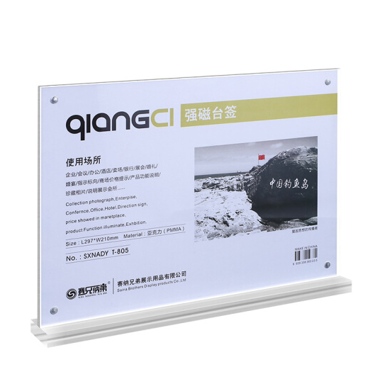 赛兄纳弟 亚克力T型强磁吸附桌牌/桌牌架/台卡 T型桌牌 横式 150*100mm