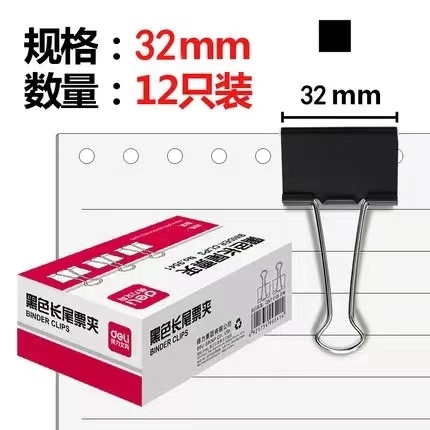 得力 deli 黑色长尾夹/燕尾夹9543 32mm 12个/盒