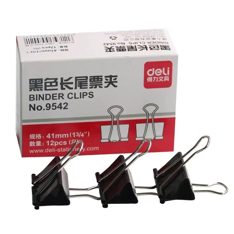 得力 deli 黑色长尾夹/燕尾夹9542 41mm 12个/盒