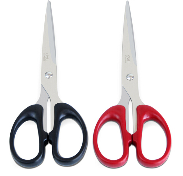 得力 deli 剪刀 6009 180mm (红色、黑色) 12把/盒 (颜色随机)