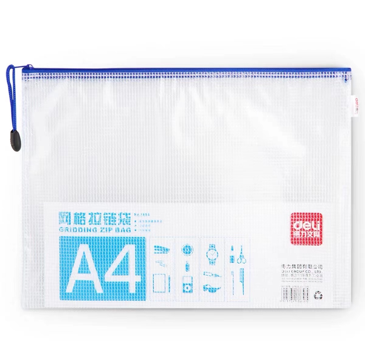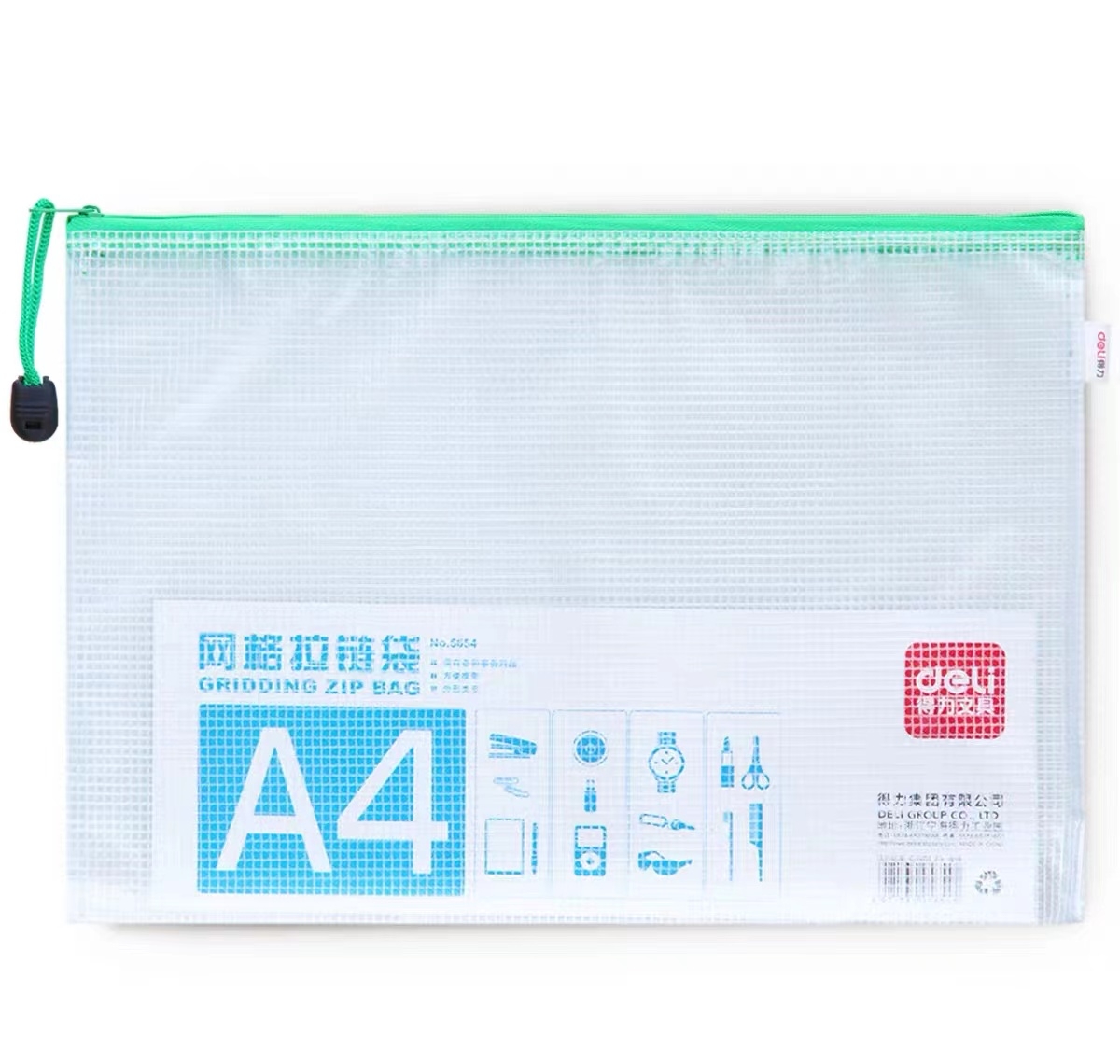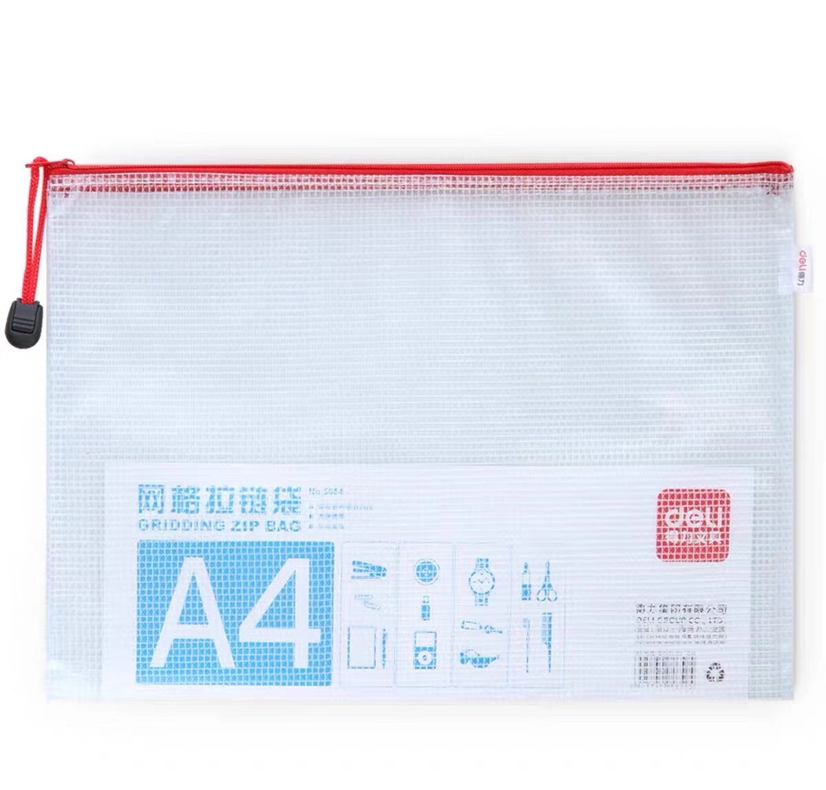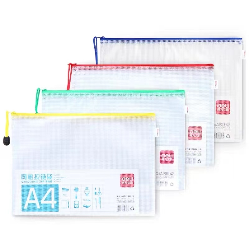 得力 deli PVC网格拉链袋 5654 A4 (红色、蓝色、黄色、绿色) 10个/包 (颜色随机)