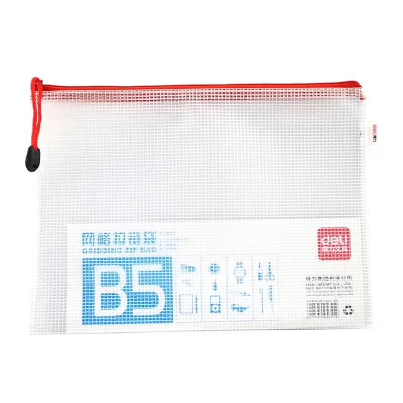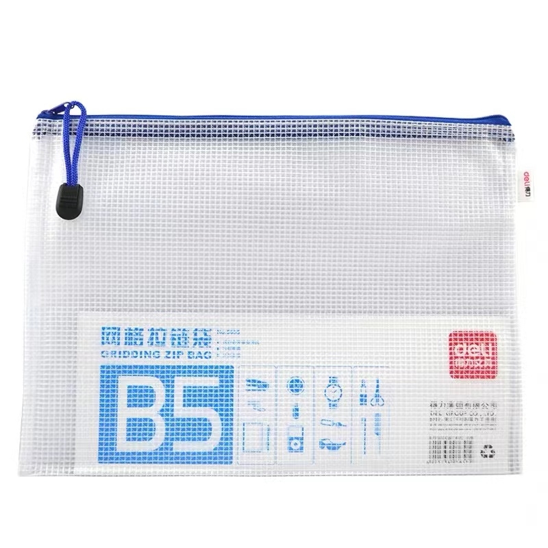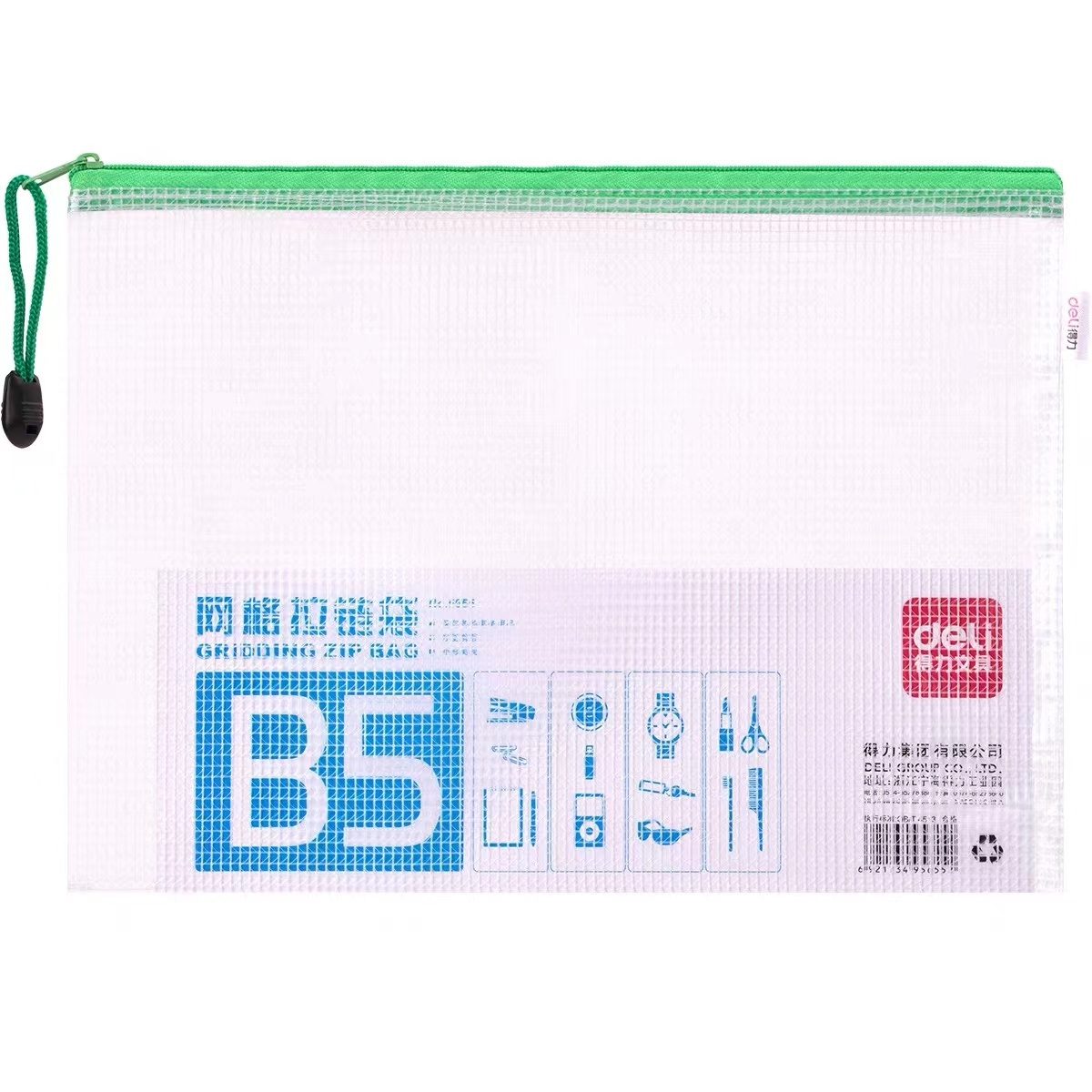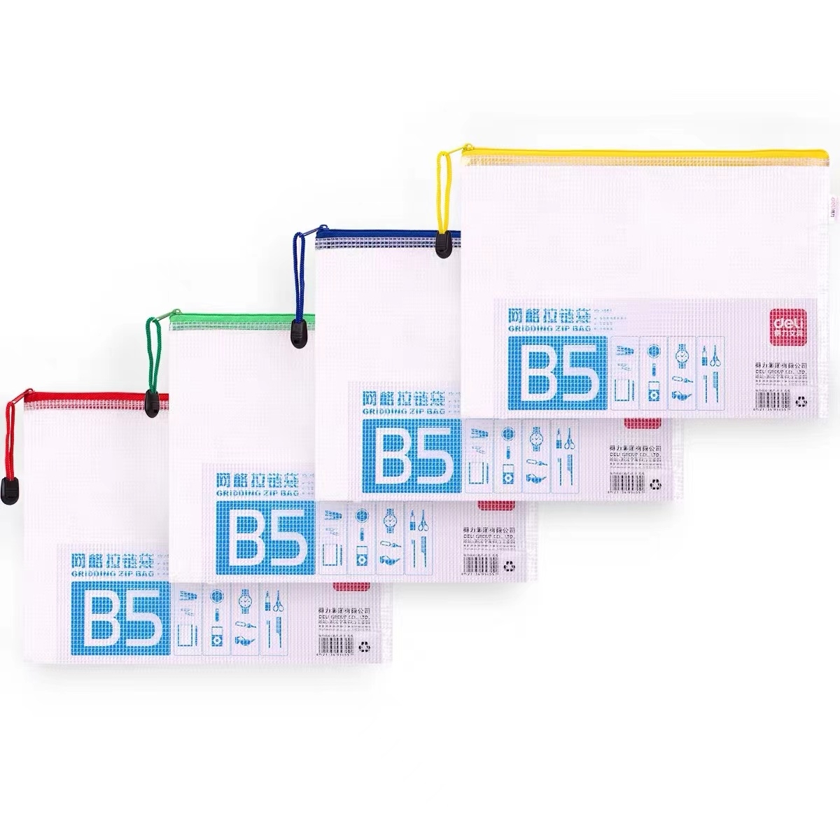 得力 deli PVC网格拉链袋 5655 B5 (红色、蓝色、黄色、绿色) 10个/包 (颜色随机)