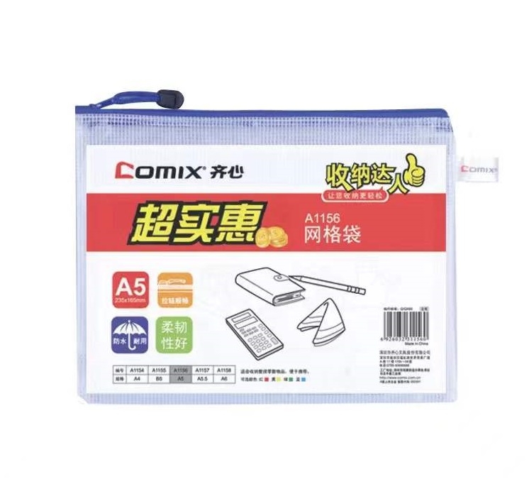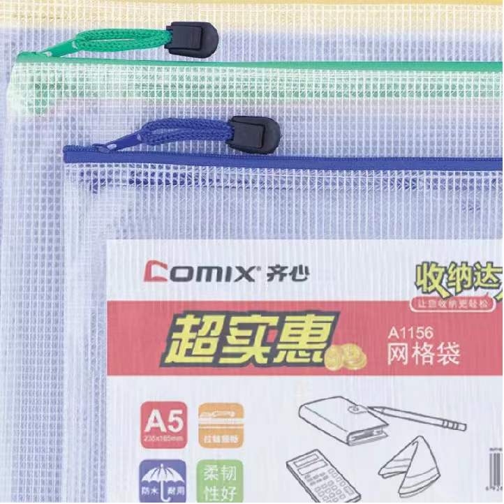 齐心 COMIX 网格拉链袋/文件袋A5 A1156 10个/包