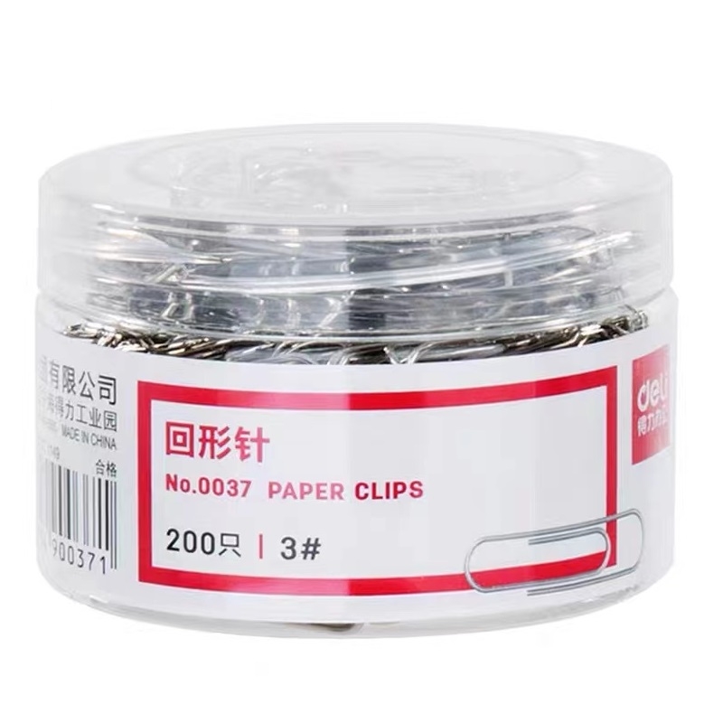 得力 deli 回形针 0037 29mm 3# 200枚/筒 镀镍回形针 金属曲别针