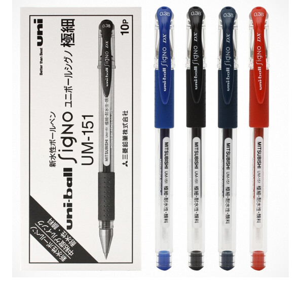 三菱 uni 极细中性笔 双珠啫喱笔 UM-151-38 0.38mm 10支/盒 (替芯:UMR-1A)