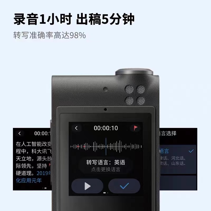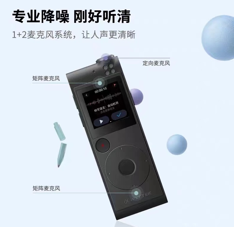 科大讯飞 AI智能录音笔 SR101 8G+云储存 (星空灰) 终身免费转写 中英文实时互转