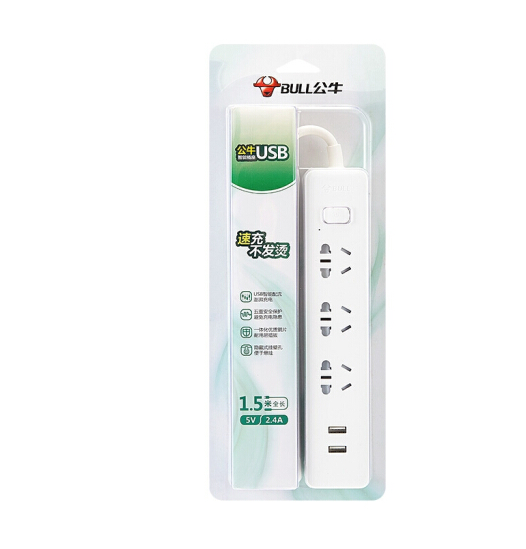 公牛 BULL USB插线板 GN UUA123 1.5M 总控3位 2USB (白色)