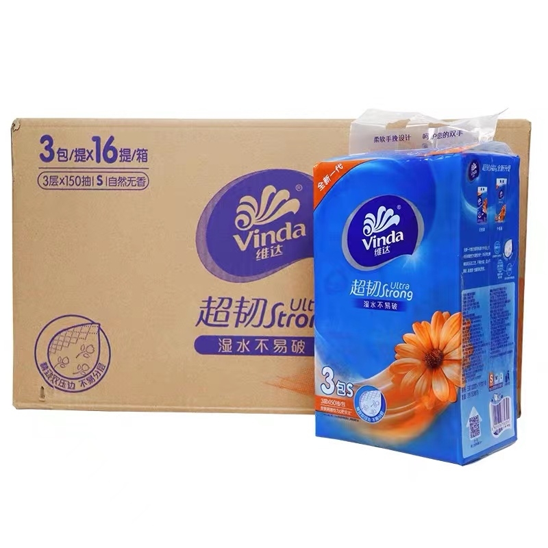维达 vinda 超韧软包抽纸面巾纸 软抽纸 V2219 三层 S码 150抽/包 3包/提 16提/箱