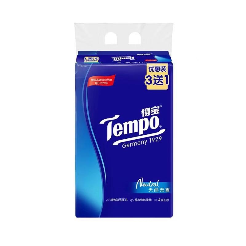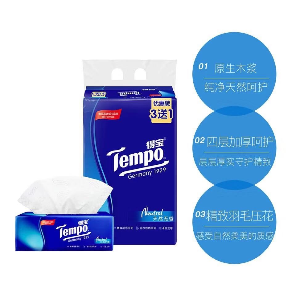 得宝 软包抽取式面巾纸 软抽纸 T2275 四层 90抽/包 (3+1)包/提 16提/箱 (天然无味)