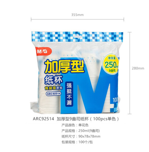 晨光 M&G 加厚型纸杯 ARC92514 9盎司 100只/包