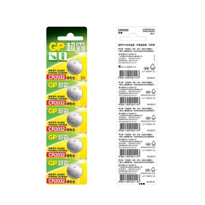 超霸 GP 纽扣电池 锂电池CR2032 3V 5粒/卡