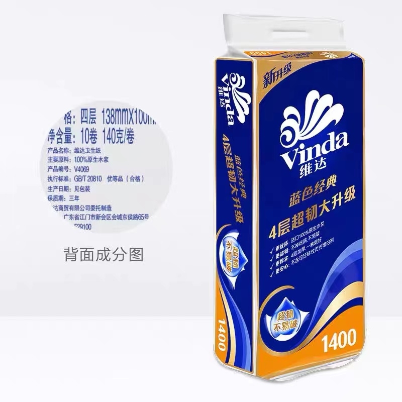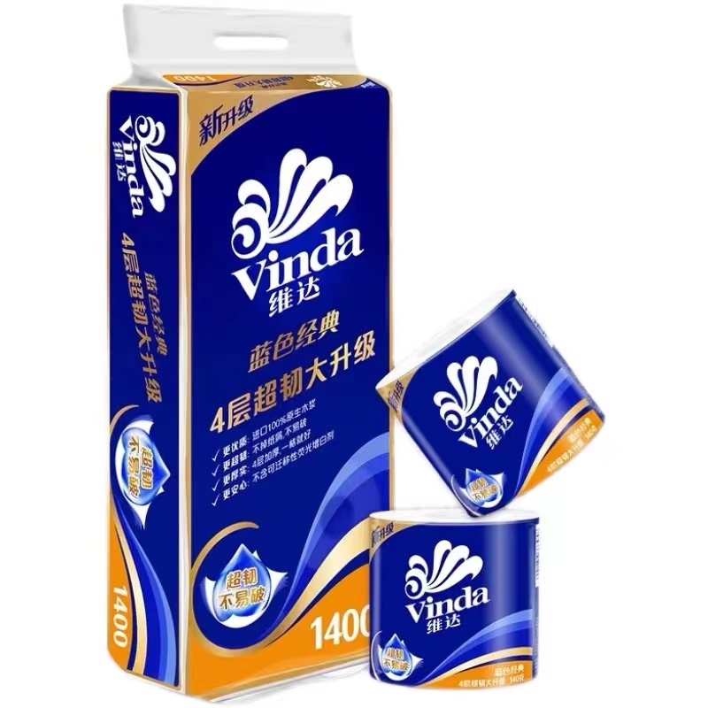 维达 Vinda 蓝色经典卷筒卫生纸 卷纸 四层 140克/卷 V4069 10卷/提
