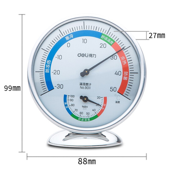 得力 deli 室内盘式温湿度计 9011 99*88mm 温度计