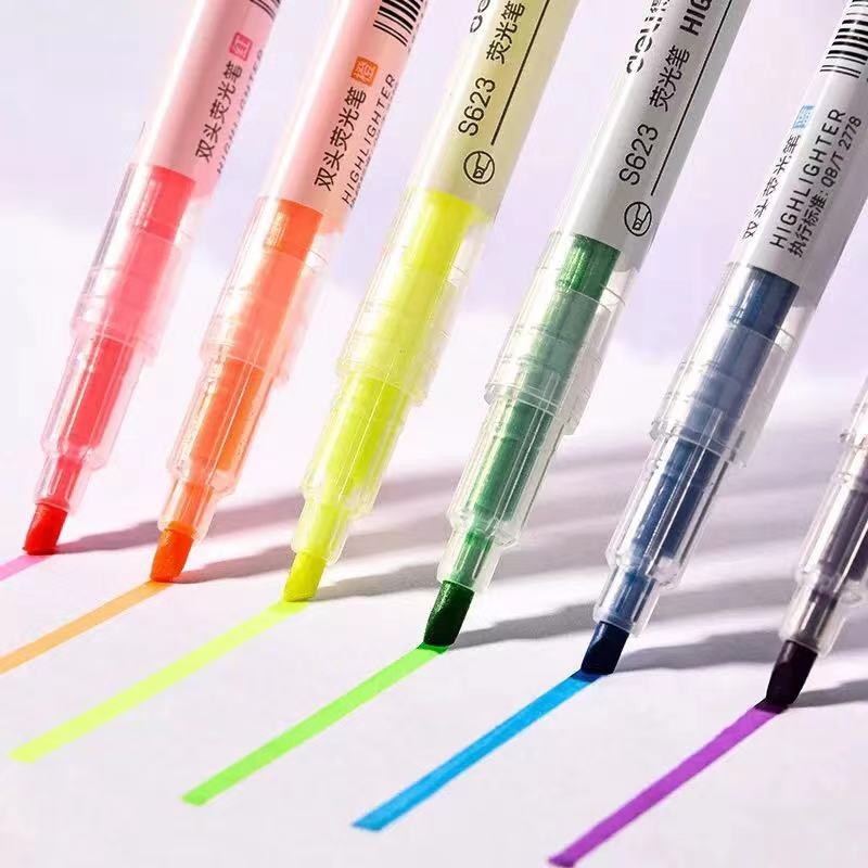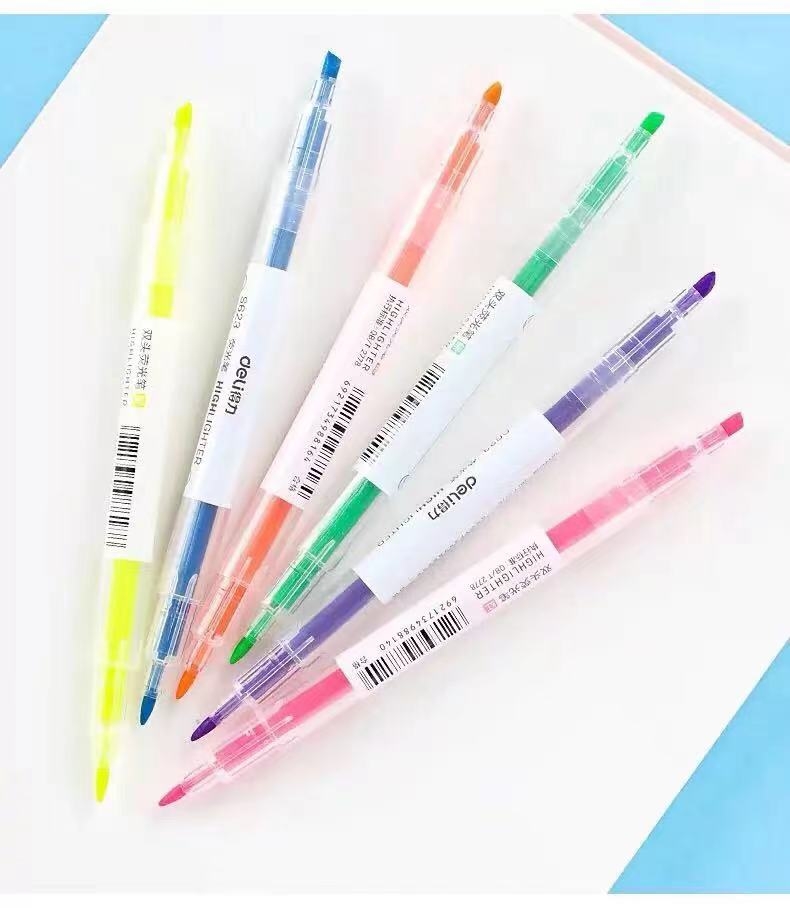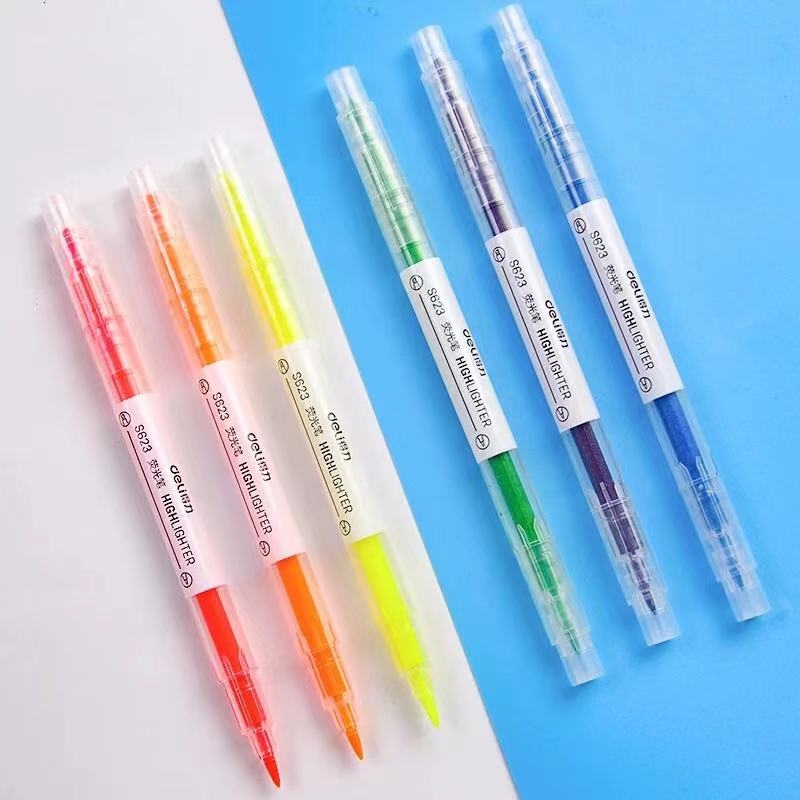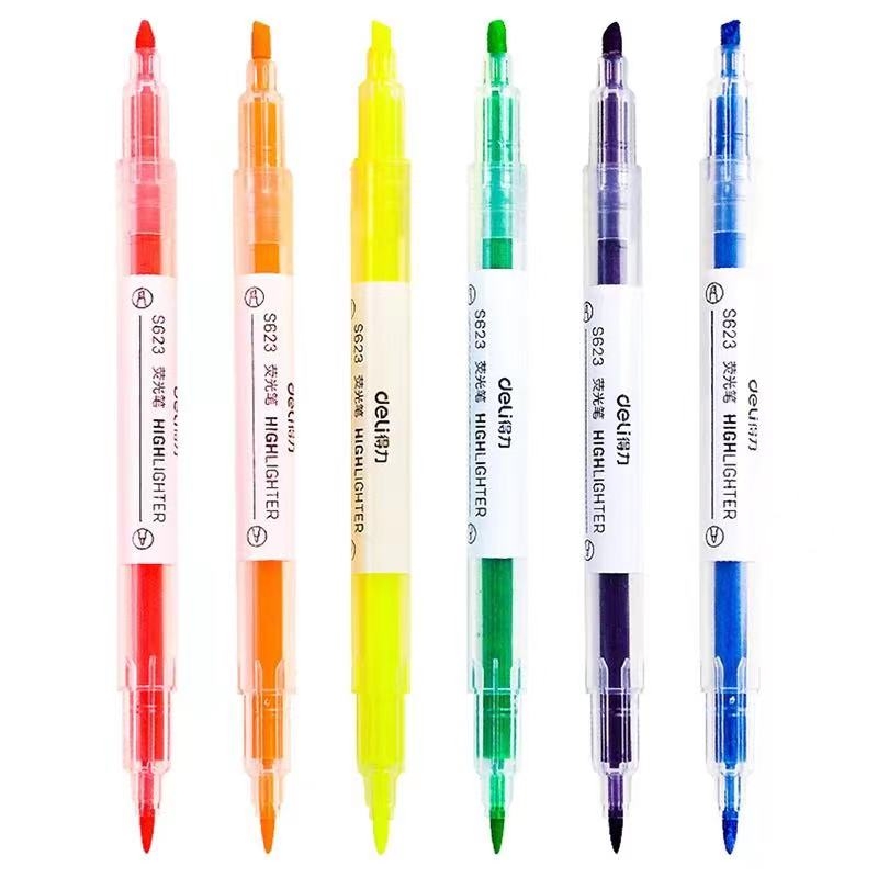 得力 deli 双头荧光笔 记号笔 S623(六色:黄色 橙色 粉色 蓝色 绿色 紫色)