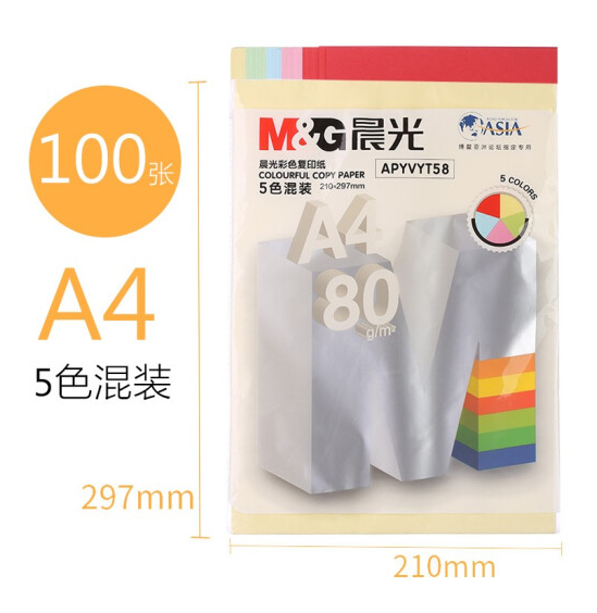 晨光 彩色复印纸 五色复印纸 A4 80克 100张/包