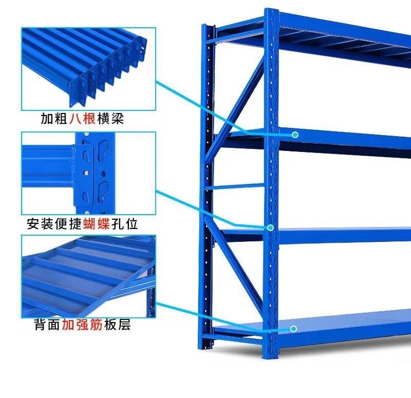 仓储四层货架 每层承重200kg 高200cm长150cm宽50cm(蓝色 灰色)