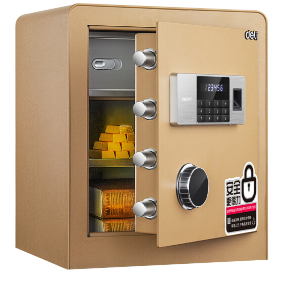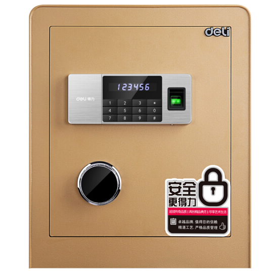 得力 deli 4105指纹密码保险柜 高45cm 金色