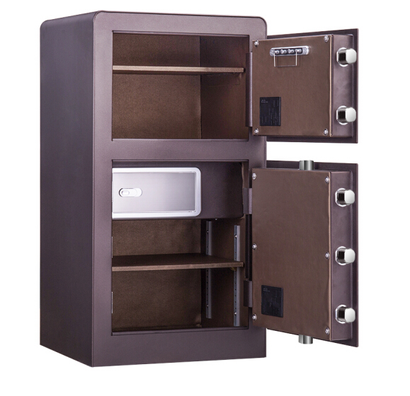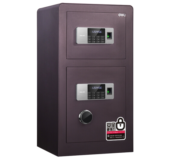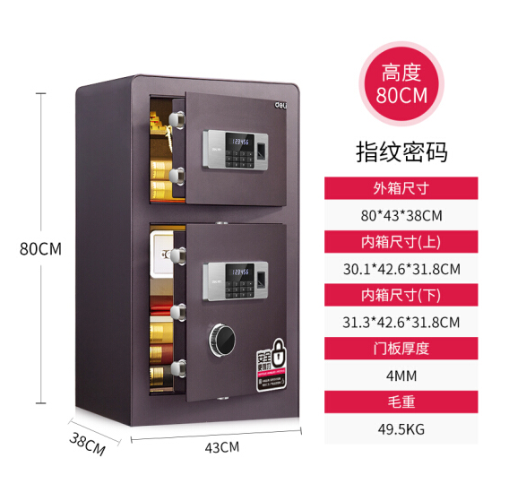 得力 deli 双层 指纹密码保险柜 高80cm 4108 酒红色