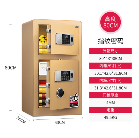 得力 deli 双层 指纹密码保险柜 高80cm 4108 金色