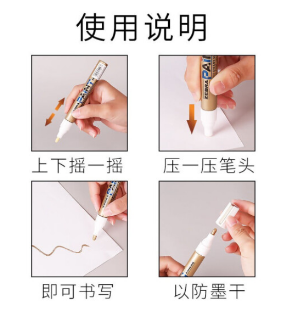 斑马牌 ZEBRA 油漆笔 MOP-200M 2.0-3.0mm(八色:金色/银色/红色/黄色/绿色/蓝色/黑色/白色)