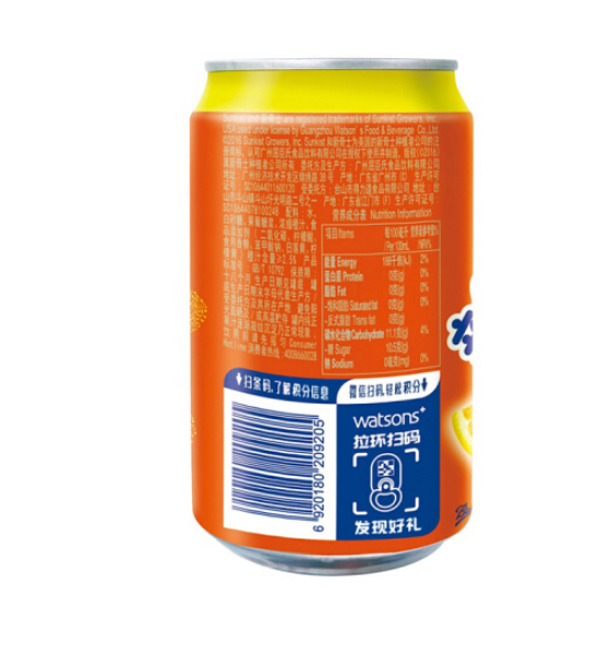 屈臣氏 watsons 新奇士橙味 330ml/罐 24罐/箱