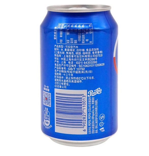 百事可乐 PEPSI 碳酸饮料 330ml/罐 24罐/箱