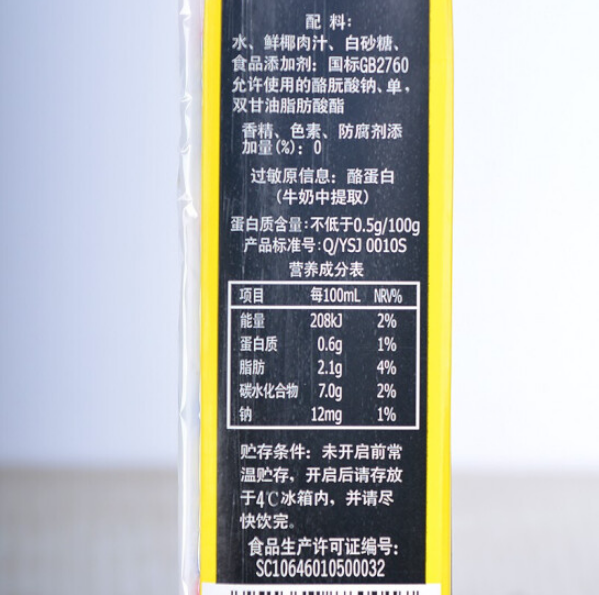 椰树 天然椰汁 245ml/盒 24盒/箱