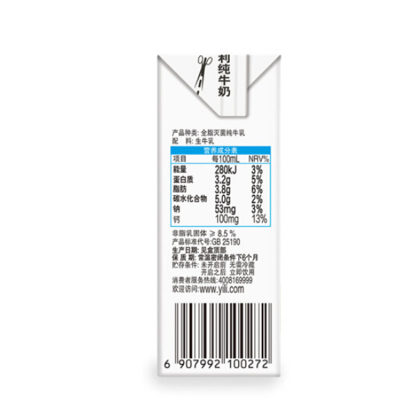 伊利 纯牛奶 250ml/盒 24盒/箱