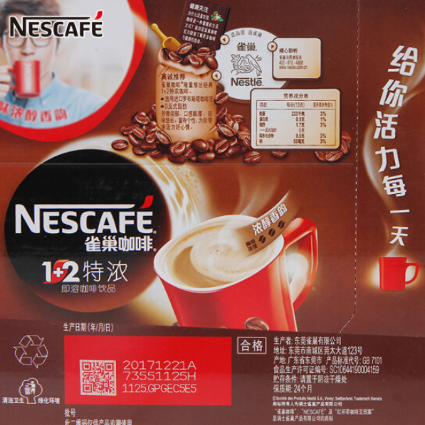雀巢 Nestle 1+2速溶咖啡 15g/条,30条/盒