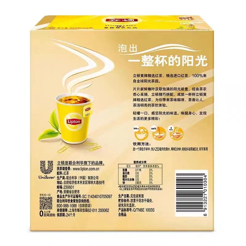 立顿 Lipton 黄牌精选红茶 2g/包 100包/盒