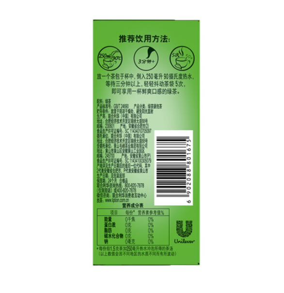 立顿 Lipton 乐活绿茶 S20 20包/盒