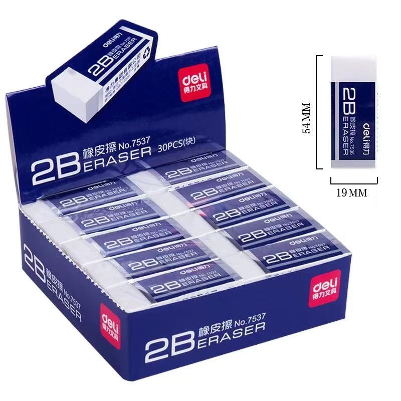 得力 deli 2B橡皮擦 7537 54*19mm(30块/盒)
