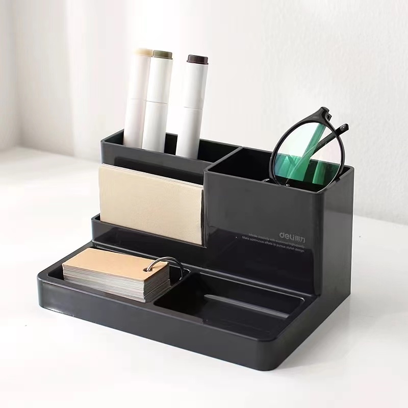 得力 deli 五格简约桌面收纳盒 多功能办公笔筒 9115 黑色 / 白色