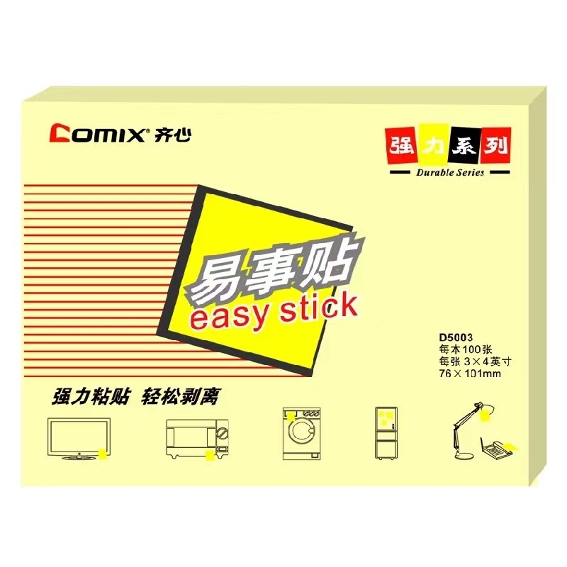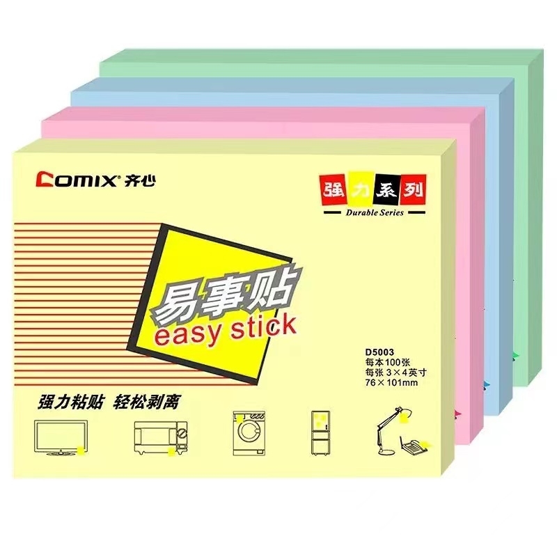 齐心 Comix D5003 便利贴/便签纸/报事贴/易事贴/百事贴 颜色随机 12本装 76x101mm